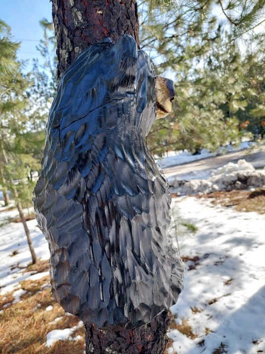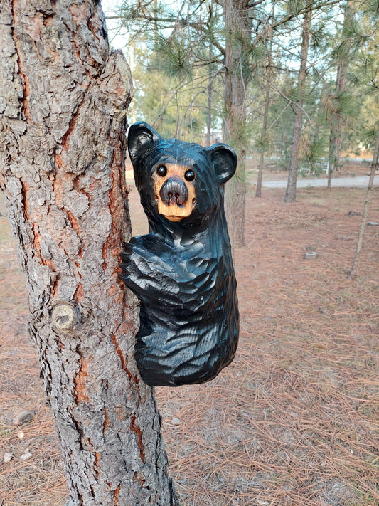 Wood Carved Climbing Bear for Posts, Poles, Trees, and More - 15 Inches, Easy to Mount and Display - Black