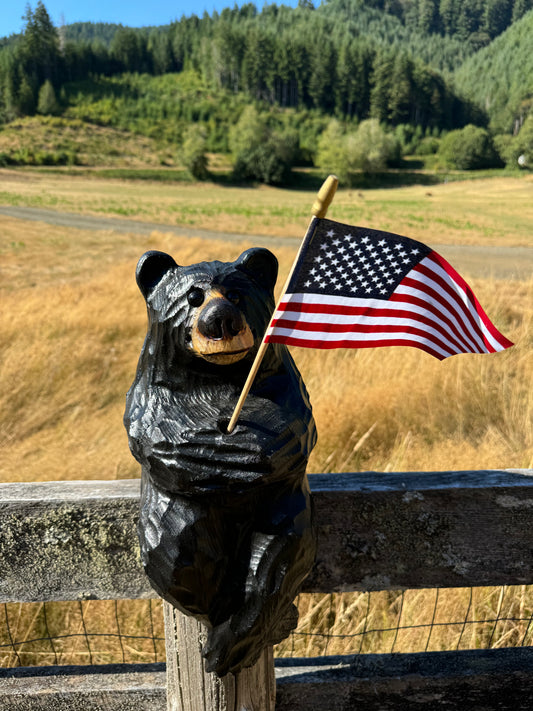 14” Wood-Carved Bear for Railing, Shelf, Mantel