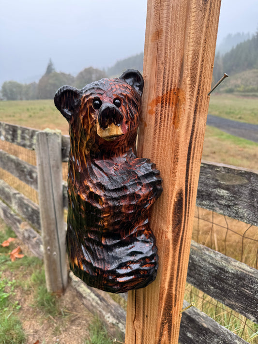 Wood Carved Climbing Bear for Posts, Poles, Trees, and More - 15 Inches, Easy to Mount and Display - Brown