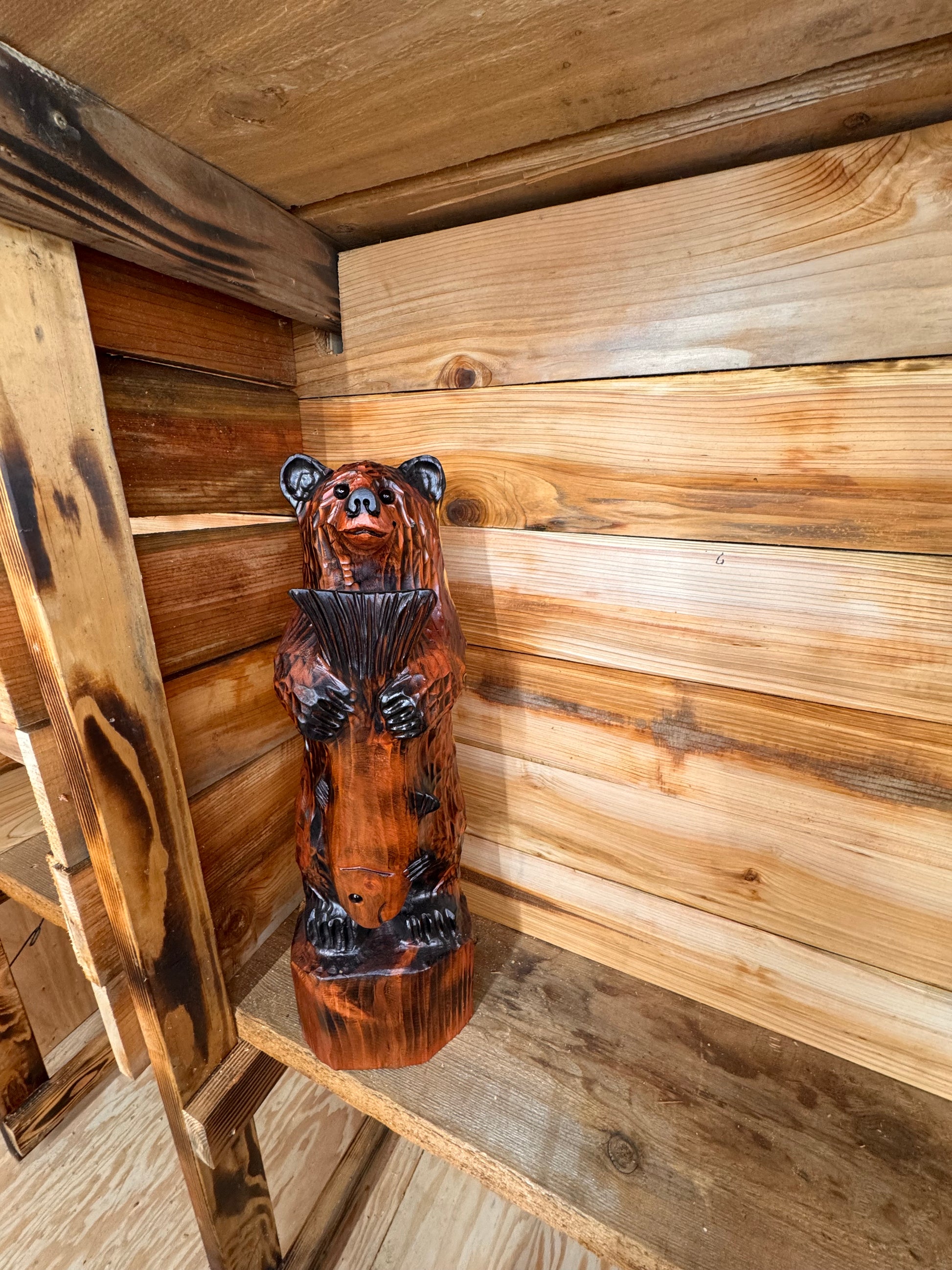 Handcrafted Wooden Bear with Fish 30" - Brown
